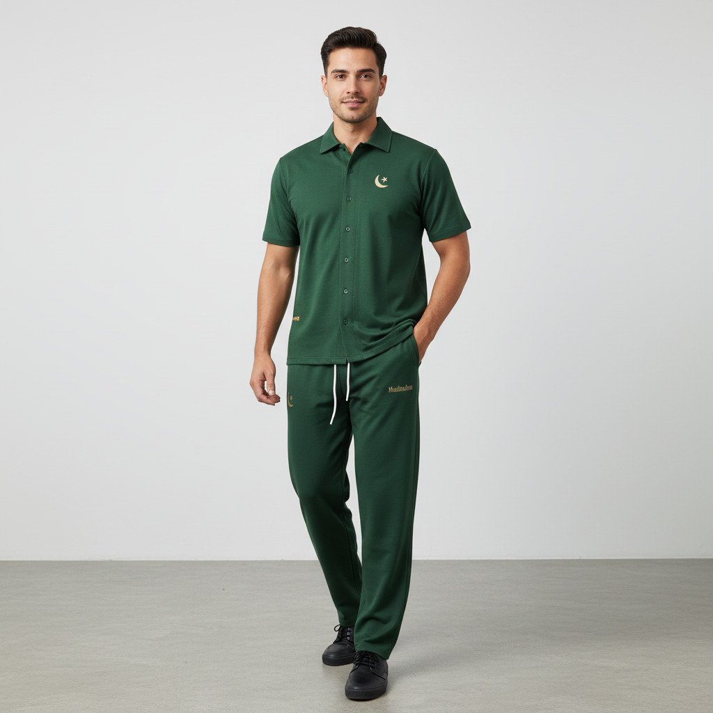 Ensemble Chemise Avec Pantalon+ Débardeur 3pcs Vert